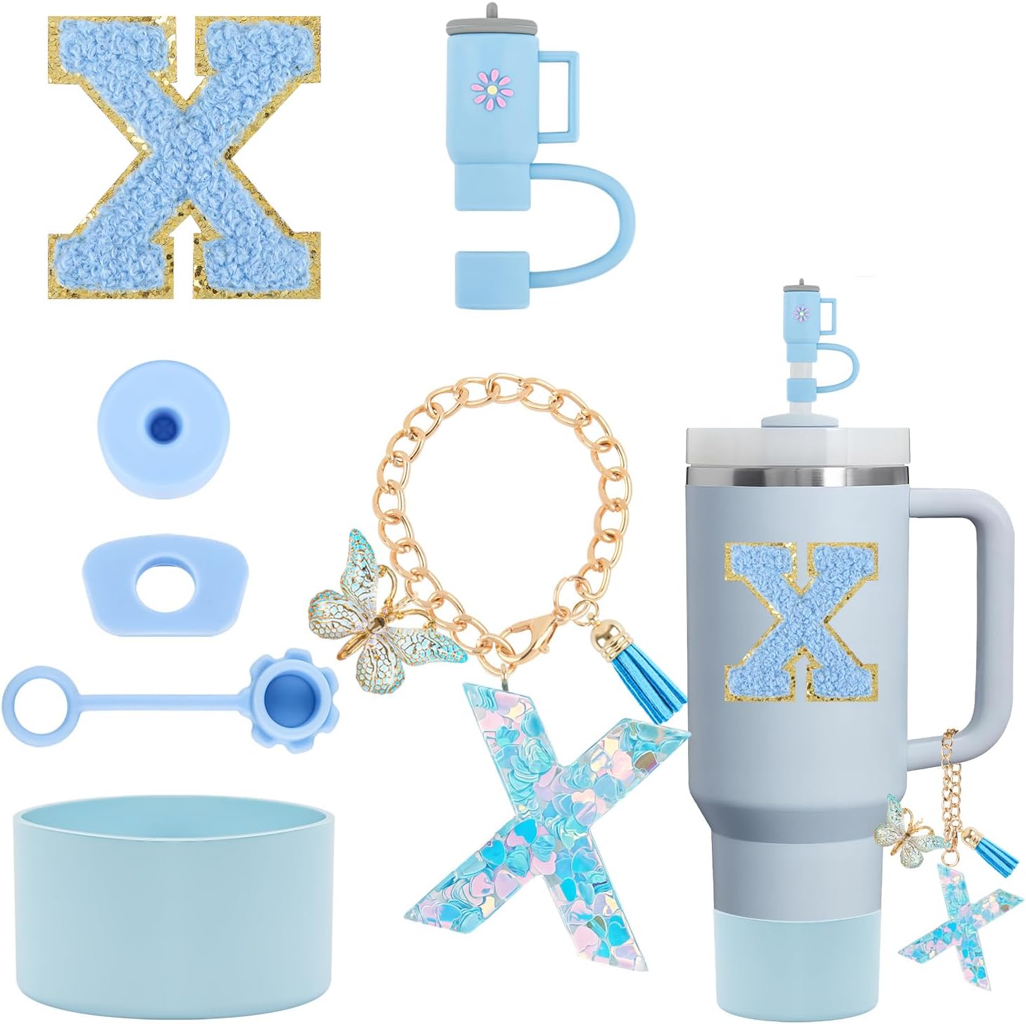 | Included Components | 1PCS Blue Water Bottle Boot, 1PCS Initials Sticker, 1PCS Round Anti-spill Stopper, 1PCS Square Anti-spill Stopper, 1PCS Straw Cover Cap, 1PCS Stanley Cup Straw Cover, 1Pcs Letter Keychain |