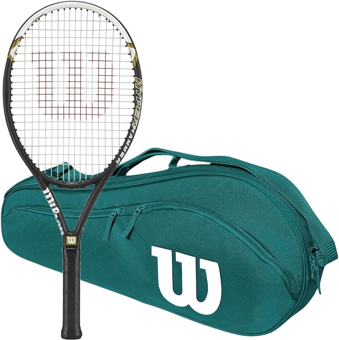 Included with your order is (1) Wilson Hyper Hammer 5.3 Tennis Racquet, and (1) Wilson Advantage 2.5 Tennis Bag or Backpack in your choice of style and color. The Wilson Hyper Hammer 5.3 Oversized/Extended Tennis Racquet is an excellent choice for an entry level, high-performance adult racket. Spanning decades, this very popular Hyper Carbon model is perfect for players looking for a balanced mix of feel, control, and comfort. It has a generous head size at 110 square inches, a control-minded 16x20 string pattern, an extended frame length of 27.5 inches (27 inches is considered standard), and very lightweight at 9.0 ounces strung. Key Racket Features: Head Size: 110 sq. inch; Strung Weight: 9.0 oz; Balance: 8 points head heavy; Grip Type: Wilson Cushion Aire Conform Grip; String Pattern: 16 mains x 20 crosses; Frame Beam Cross Section: 25/28/25mm.