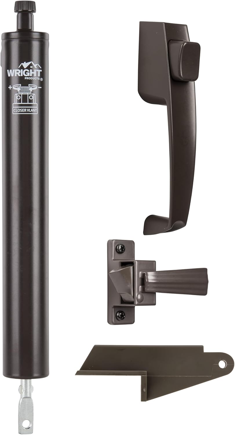 Wright Products Lanai Hardware Kit in white finish is designed for out-swinging screen doors with post or frame mounted door closers. It includes a V333 push button latch, specialty closer for Lanai enclosures and Florida jamb bracket . Closer features adjustable closing speed and a 90-degree opening range. The latch fits most doors with 1-3/4 in. hole spacing and installs in three 5/16” holes. The inside latch has a "No Lock Out" feature to prevent accidental lock-outs. Ideal for homeowners tuning up their aluminum framed enclosures or lanai sunrooms.